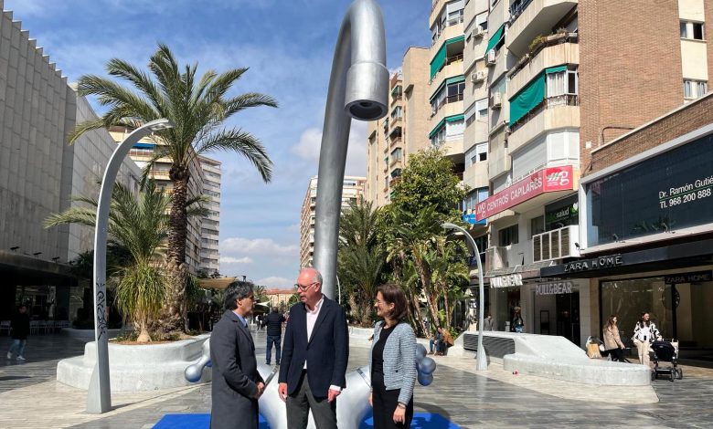Un grifo de cuatro metros y medio de altura llamaba la atención este jueves de los viandantes en la céntrica avenida de la Libertad de Murcia. Se trata de la instalación puesta en marcha por Aguas de Murcia dentro de la campaña ‘Sabe a excusa’, con la que se quiere animar a los ciudadanos a consumir agua del grifo eliminando los mitos que existen sobre su sabor y dando a conocer las garantías de calidad que cumple.
