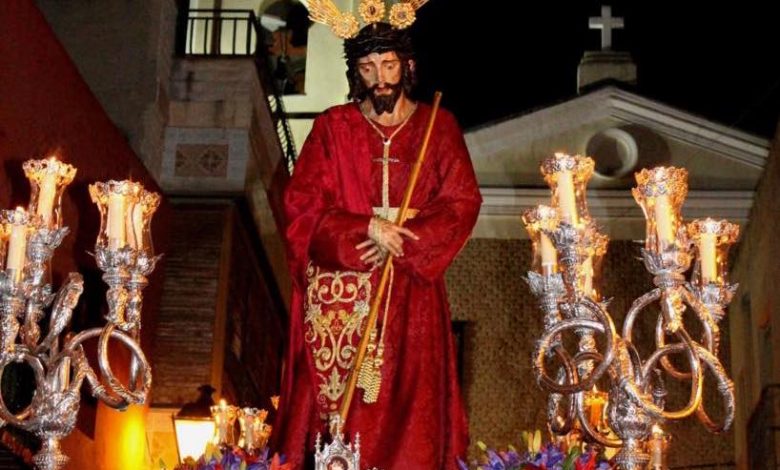 Más de 200 cofrades y 100 costaleros se concentrarán, si el tiempo lo permite, en esta procesión portando velas granates y el trono, respectivamente. El Santo Lignum Crucis es una reliquia autentica y certificada de la Santísima Cruz, con dos astillas de la Vera Cruz en un relicario de bronce. Finaliza el cortejo el Cristo de la Salud y Misericordia, imagen de madera policromada que representa a Jesús con corona de espinas, caña en la mano, túnica blanca y clámide roja.