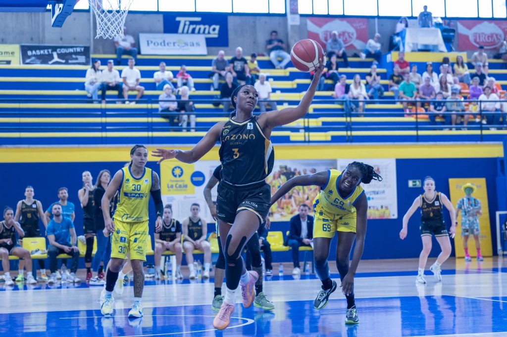 Los últimos diez minutos comenzaban con Delicia Washington imponiendo un ritmo alto y sacando ventajas del contraataque. Belén Arrojo reducía la diferencia a ocho puntos con una canasta de media distancia a pase de Bishop. Un codazo dejaba momentáneamente fuera a Chelsea Nelson a falta de siete minutos para el final, pero las de Montañana no iban a dar el partido por perdido y la dupla Bishop-Ayuso volvía a reducir la ventaja local a seis puntos. Las canarias subían la intensidad física y, por medio de Ndour y Washington, lograban una ventaja de trece puntos con tres minutos por jugar. La falta de acierto y la diferencia de faltas condenaban al Hozono Global Jairis en los minutos finales y el partido finalizaba con 76-63 en el marcador.