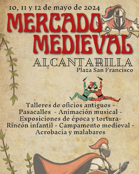 El Mercado Medieval se instala del viernes 10 al domingo 12 de mayo en su emplazamiento habitual de la plaza San Francisco. Más de 40 puestos de artesanía, demostración de oficios, exposición de trajes y aperos antiguos, campamento medieval y un trono para usar como photocall. Además también habrá pasacalles, personajes mitológicos, bufones, arlequines, acróbatas, malabares, zancudos, música medieval, danza oriental, teatro de calle, y actividades infantiles.