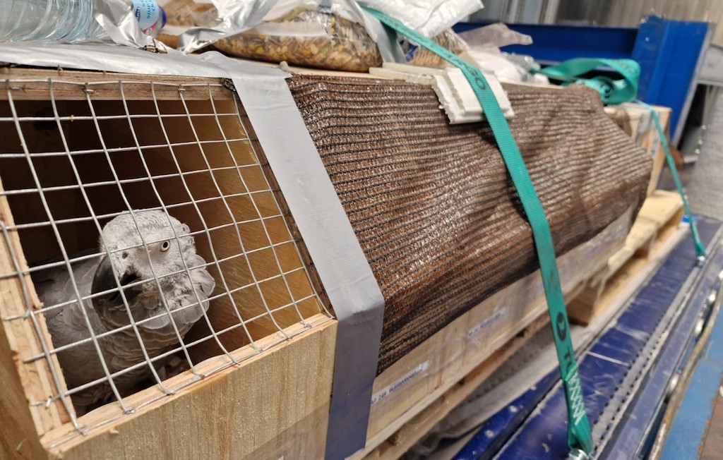 Repatrían a Congo vía aérea 34 loros grises africanos procedentes del tráfico ilegal
