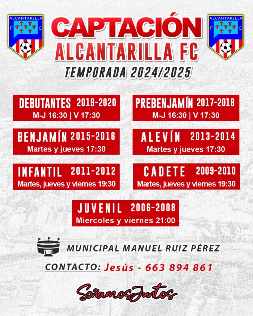 Alcantarilla Fútbol Club Universae está inmerso en la preparación de la inminente próxima temporada. Pero además de configurar los equipos de competición, está impulsando la captación de nuevos jugadores y jugadoras para los equipos de cantera: debutantes (nacidos en 2019 y 2020), Prebenjamín (2017 y 2018), Benjamín (2015 y 2016), Alevín (2013 y 2014), Infantil (2011 y 2012), Cadete (2019-2010) y Juvenil (2006-2008).