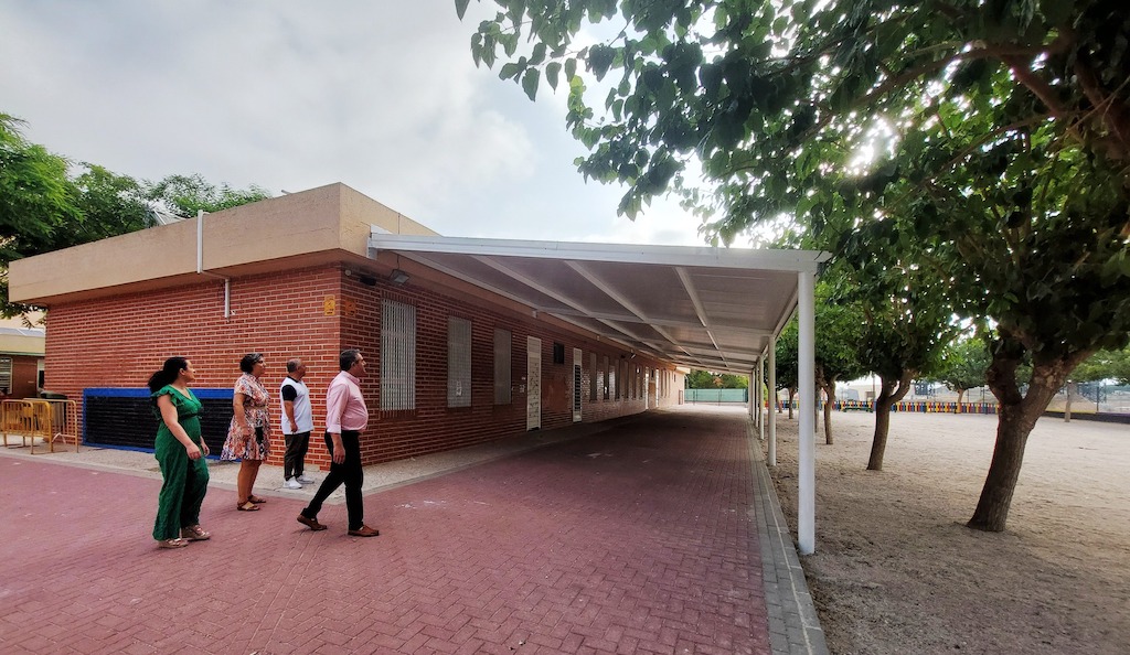 El Ayuntamiento de Alcantarilla y la Comunidad Autónoma han instalado una estructura metálica de 222 metros cuadrados para dar sombra en el pabellón de Educación Infantil del CEIP Jacinto Benavente.