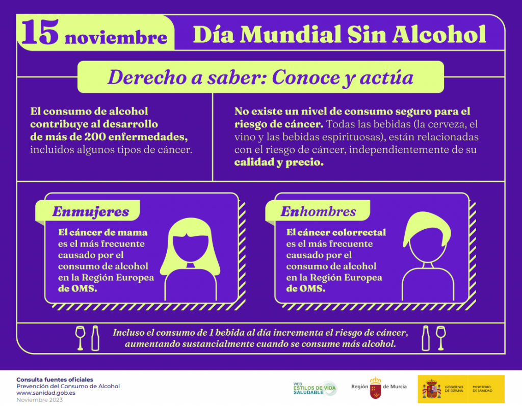 El viernes, día 15 de noviembre, se celebra el Día Mundial sin alcohol para recordar y difundir los riesgos asociados al consumo de alcohol y cómo prevenirlos.