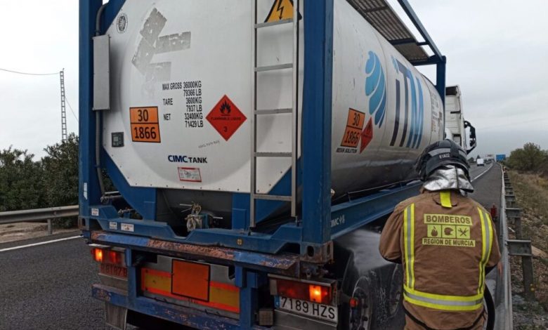 Apagan el incendio en un camión cisterna en Alcantarilla antes de que afectara a la carga