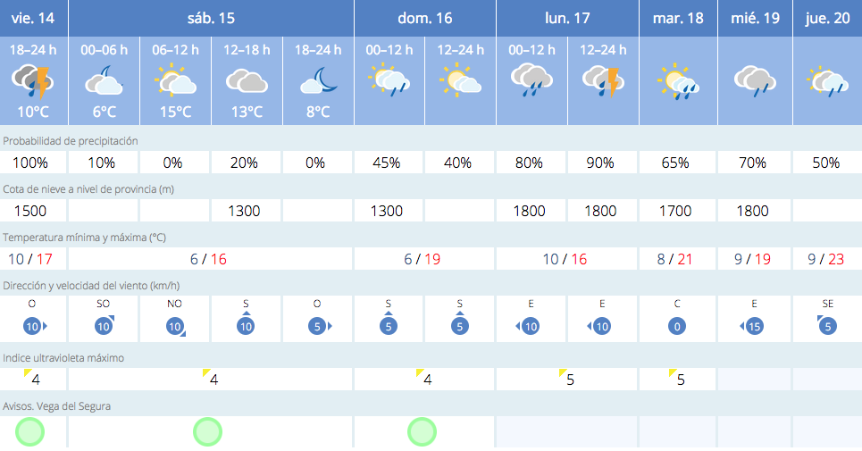 Tras dos semanas de lluvias, la próxima tendremos… más lluvias. Este fin de semana será de tregua, pero una tregua no neutral, porque va a estar nublado y pueden caer lluvias débiles. Y a partir del lunes, el agua vuelve a la carga (80-90% de probabilidad de lluvia), aunque puede ir reduciendo esa probabilidad conforme avance la semana.