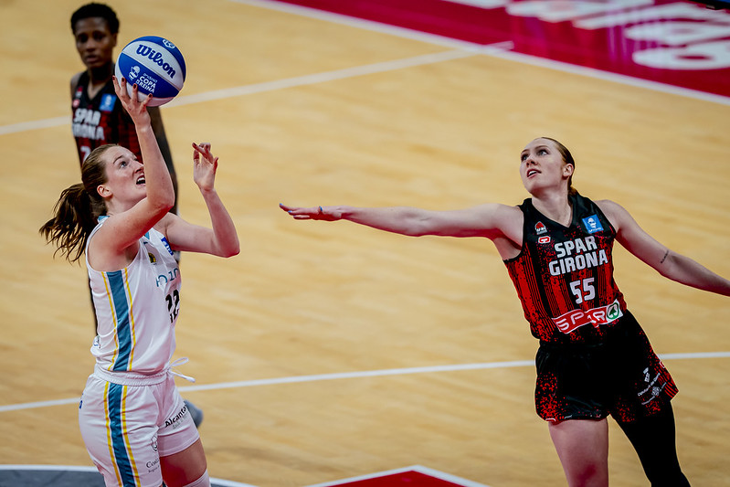 La histórica cita comenzaba con un parcial de 0-6 por parte del conjunto murciano. Reaccionaban las catalanas por medio del acierto exterior de Imani Tate, pero pronto contestaba Bertsch para poner el 3-8 al ecuador del cuarto. Tras canasta de Touré, un triple de Aina Ayuso levantaba al respetable del Príncipe Felipe. Aparecía Lundquist para anotar el séptimo punto de las gerundenses y, tras dos triples de las murcianas, cinco puntos de Bibby apretaban de nuevo el marcador. Carolina Guerrero ponía el 14-16 ante un Hozono Global Jairis incapaz de anotar durante casi seis minutos. Tras dos tiros libres anotados por Alarcón, una canasta de Holesinska sobre la bocina que cerraba el cuarto con 14-19 en el marcador.