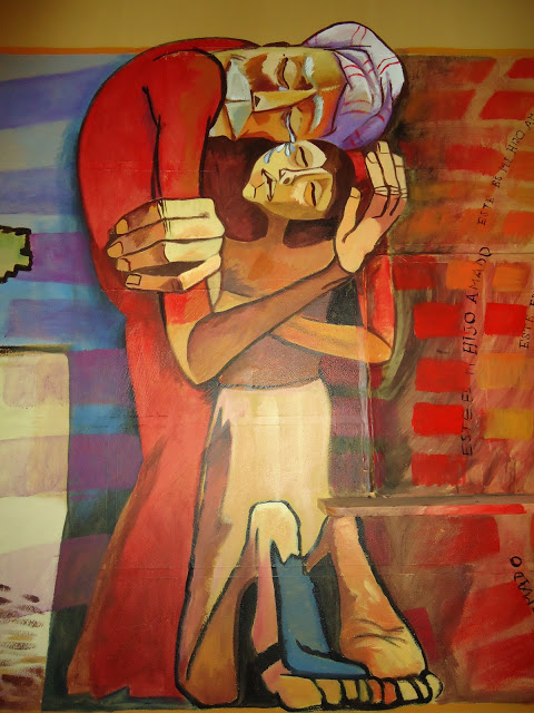 En la parábola del hijo pródigo hay otro verbo que destaca. Es el verbo griego correspondiente al beso (katafileo), el cual destaca el carácter extraordinario del mismo. Merece la pena recrearse en la contemplación de este besazo – o “besango”, que diríamos en Bolivia -. Es un beso efusivo e insistente, que expresa una gran ternura y celebra en silencio la gran alegría de un padre conmocionado. El padre no paraba de besar a su hijo encontrado, – en castellano castizo diríamos: “se lo comía a besos” -. El besazo del padre abrazado a su hijo es el culmen del encuentro del hijo perdido y arrepentido con el padre misericordioso y conmocionado. Este amor indebido y gratuito es el que sale al encuentro de la libertad del hijo y lleva consigo la rehabilitación del hijo menor, convertido ya en criatura nueva. Y ése es el motivo de la gran alegría, de la plenitud de la alegría, que desencadena la gran fiesta en la casa del padre por el hijo perdido y encontrado, muerto y resucitado.