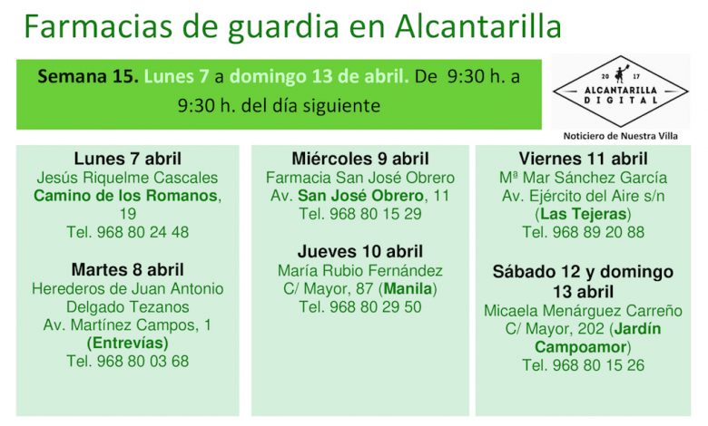 Farmacias de guardia en Alcantarilla del lunes 7 al domingo 13 de abril
