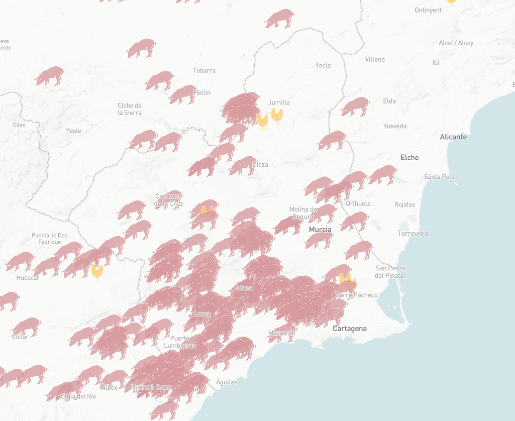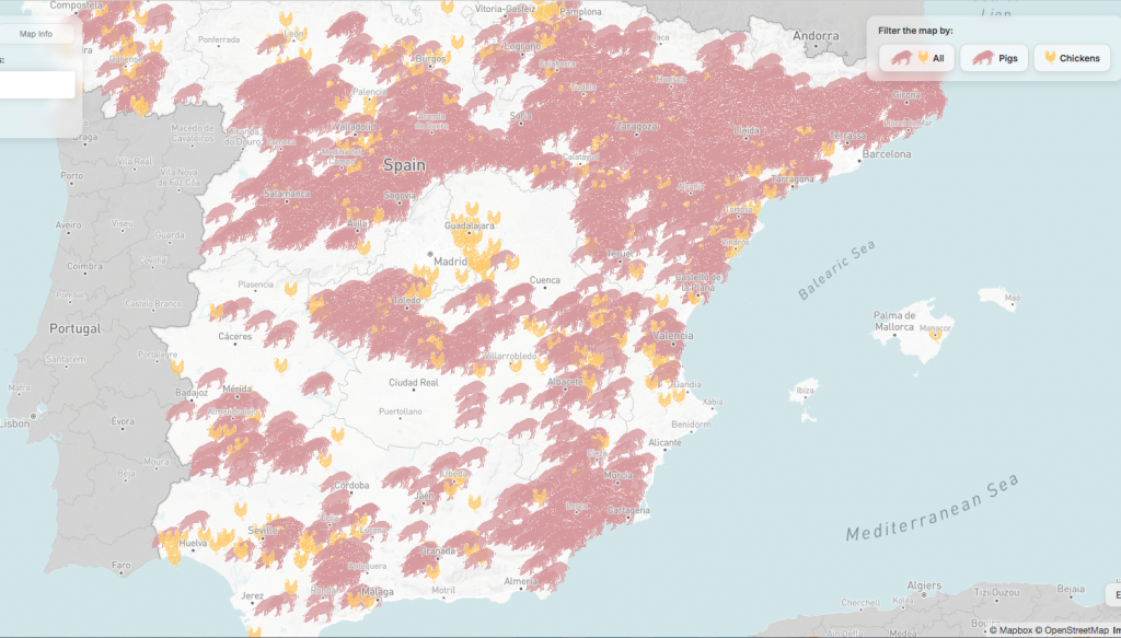 La investigación, basada en datos de AGtivist, ha identificado, por primera vez, y ha cartografiado estas granjas industriales en toda Europa, mostrando que la UE tiene 10.862 granjas de pollos con al menos 40.000 aves cada una (tanto criadas para la producción de carne como de huevos) y 8.854 granjas de cerdos con al menos 2.000 cerdos cada una (2.547 para cerdos de cría).