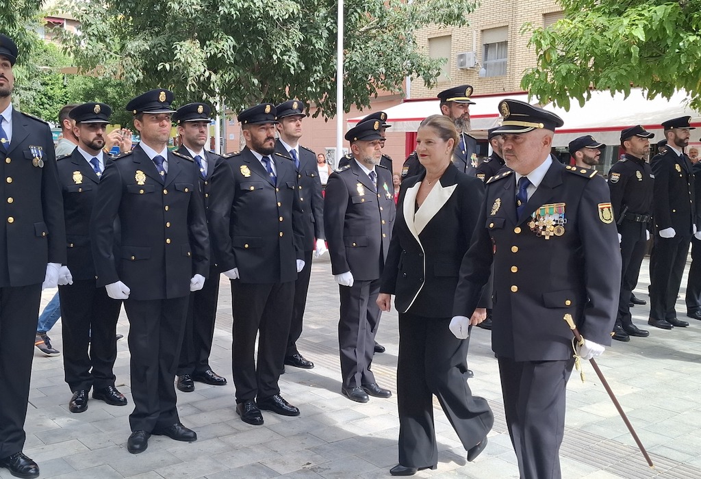 La alcaldesa, Paqui Terol, y el jefe de la Comisaría de Policía Nacional en Alcantarilla, Antonio Navarro, descubrieron este miércoles el monumento, durante la celebración del Día de la Policía en la ciudad y entregaron las condecoraciones y distinciones a los agentes galardonados y a las personas o instituciones que han colaborado con ellos.