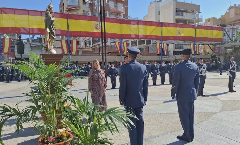 La alcaldesa de Alcantarilla, Paqui Terol, y el general del Ejército del Aire y del Espacio, Fernando Carrillo, junto con el coronel de la Base Aérea, José Ignacio Sánchez-Heredero, han presidido un acto que “muestra el cariño del pueblo de Alcantarilla hacia las Fuerzas Armadas, que se puede comprobar por la cantidad de personas que nos han acompañado esta mañana y por las ventanas y balcones engalanados con la Bandera de España esperando con ilusión el Día de la Fiesta Nacional”, ha señalado la alcaldesa.
