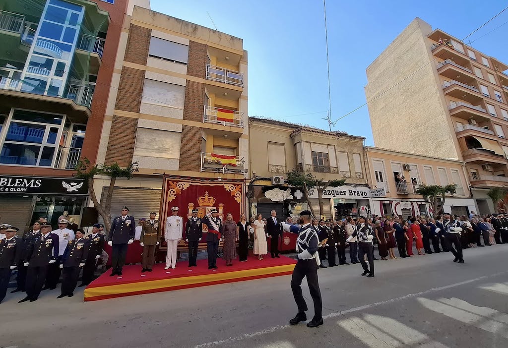 Alcantarilla ha celebrado este domingo el tradicional acto de Homenaje a la Bandera de España, organizado por el Ayuntamiento y la Base Aérea de Alcantarilla, que consiste en el izado de una bandera de 54 metros cuadrados sobre un mástil de 25 metros de altura, mientras suena el Himno Nacional, antes de la jura para personal civil. También ha habido un homenaje a los caídos por España y un desfile militar por la calle Mayor.