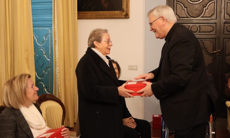 Acompañados por el equipo directivo de Cáritas Diocesana, María Teresa, Consuelo, Antonio y la familia de Pepe han acudido este viernes al Palacio Episcopal de Murcia, donde han sido recibidos por el obispo de Cartagena y presidente de Cáritas Diocesana, José Manuel Lorca Planes. El prelado les ha impartido la bendición; les ha entregado como obsequio una cruz de Caravaca, elaborada por las usuarias del taller del mueble de Cáritas en la pedanía murciana de Espinardo; y ha tenido unas palabras para cada uno de estos voluntarios, agradeciendo su entrega.