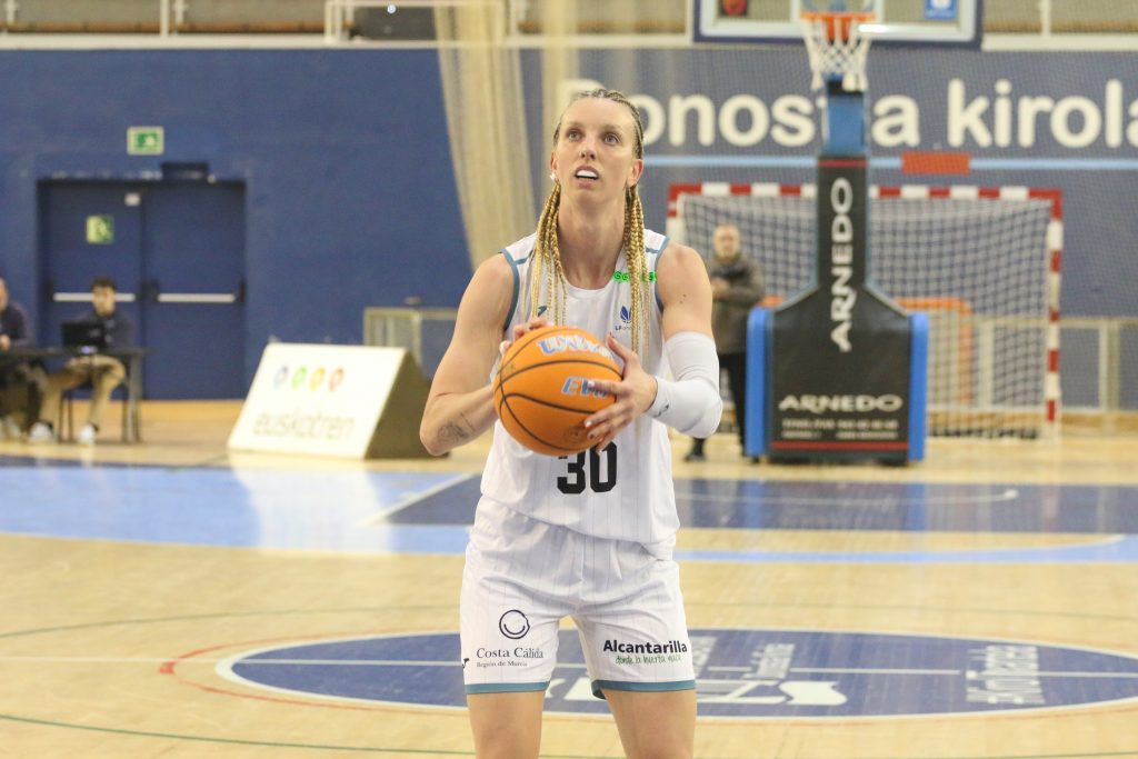 El primer minuto de los últimos diez minutos se consumía con una canasta de las locales y ninguna de las murcianas, provocando el tiempo muerto de Canut para buscar soluciones a la falta de fluidez en ataque. La acción se reanudaba con dos tiros libres anotados por Mataix y, tras un acierto de González, aparecía Massey con su fadeaway marca de la casa para anotar la primera canasta en juego de las murcianas en el cuarto. Mataix convertía un 2+1 que situaba la diferencia en 21 puntos, pero un arreón de Robinson las acercaba de nuevo con dos canastas consecutivas de la norteamericana. Los últimos cinco minutos llegaban con una canasta de Alarcón y un 2+1 de Faye y, tras una buena asociación entre Bertsch y Gil, anotaban de nuevo las vascas y Canut paraba el choque con cuatro minutos por disputar. El juego se reanudaba con una bandeja de Gil, pero la murciana cometía falta sobre Faye en el siguiente ataque y la diferencia regresaba a los 15 puntos. La de Santo Ángel bailaba en la zona para seguir poniendo tierra de por medio en el marcador cuando el reloj marcaba dos minutos por disputar y, tras triple de Remenarova, el partido se resolvía con visitas al tiro libre y con la buena noticia del debut de Claudia García, canterana del club e hija del mítico Quini García, y de la meritoria victoria del Hozono Global Jairis.