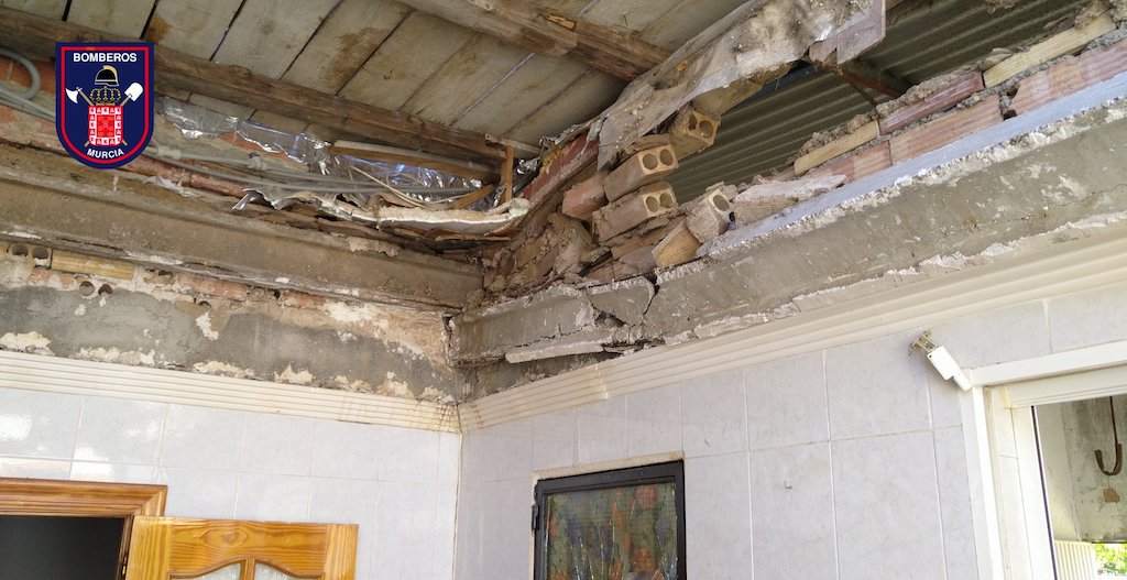 Detalle del techo en mal estado de la casa. Foto: BOMBEROS DE MURCIA